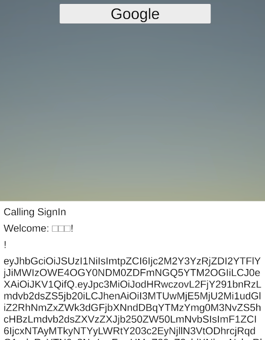 DebugMessage.Instance.ShowMessage(task.Result.IdToken + "!");