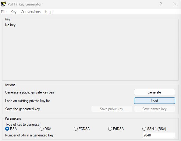 먼저 서버를 신청할 때 생성하고 다운해 놓은 서버 접속 인증키를 준비해 놓고 puttygen.exe를 실행시킨다.