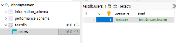 이제 이렇게 만든 계정으로 HeidiSQL에 로그인하면
