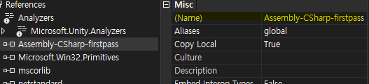 비주얼 스튜디오에서 별칭을 수정했던 설정창을 다시 켜보면 상단에 이름 속성을 확인할 수 있다.