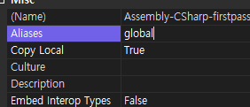 이렇게 별칭을 지정해 주면 extern 키워드를 사용하여 별칭을 참조하면 동일한 어셈블리를 구분해서 참조가 가능해진다.