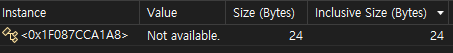 class 역시 object 타입을 베이스로 하고 있고 빈 class를 인스턴스화 하는것은 object를 생성하는것과 마찬가지이기 때문에 빈 class가 24byte라는것도 이제 납득이 간다.