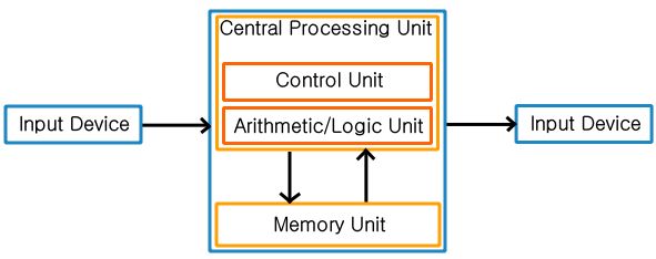 Von Neumann 아키텍처는 메모리, CPU, 입/출력 장치, 버스 등의 하드웨어 요소로 구성되며 이 중에서 CPU가 가장 핵심적인 구성 요소이다. CPU는 명령어를 순차적으로 처리하며, 프로그램의 명령어를 주기억장치에서 읽어와서 해석하고 실행한다. 따라서 명령어와 데이터를 모두 주기억장치에 저장하고 명령어와 데이터를 순차적으로 읽어오는 방식을 사용한다. 이를 '프로그램과 데이터의 저장공간이 동일하다'라는 의미에서 '단일 저장 장치(Single Memory)'라고 한다.