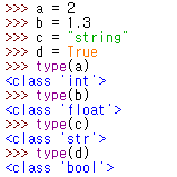 이러한 타입들은 엄밀하게 구분되는데 type() 함수를 사용하여 변수나 값의 타입에 대한 정보를 알 수 있다.