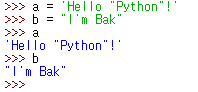 일반적인 문자열을 감쌀 때는 두 부호가 동일하게 동작을 하지만 특수한 상황에서 다르게 사용한다.