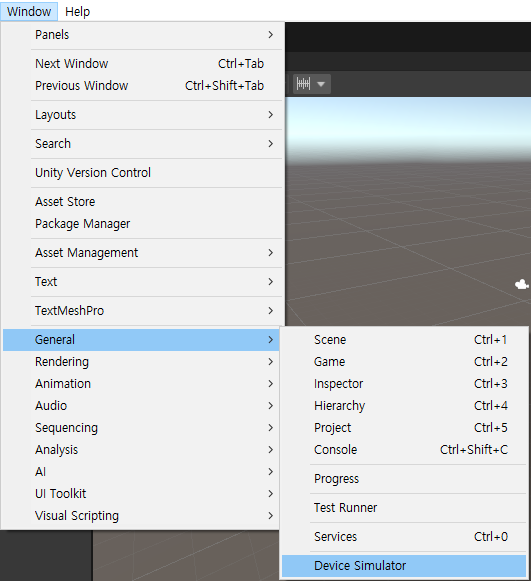 2020 이후 버전이라면 에디터에 기능이 포함된 상태로 Window > General > Device Simulator 를 통해 사용할 수 있다.