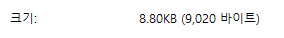 파일크기는 9kb로 나오는데 해당 파일을 속성을 열어서 자세히 보면