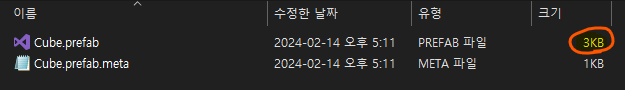 프리팹에 오브젝트가 많이 포함되어 있을수록 파일의 사이즈는 확연히 차이가 난다.
