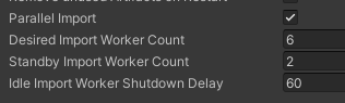 에셋을 임포트 할 때 동시에 진행하도록 하는 설정이다.