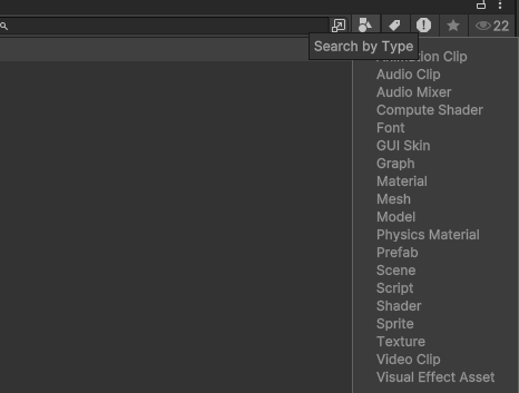 그 밖에도 유니티 검색창에서 사용할 수 있는 특정 키워드가 존재한다.