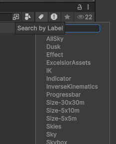 레이블은 에셋을 그룹화하는 데 사용할 수 있는 태그 같은 것으로 에셋을 선택하고 인스펙터 창의 하단에 있는 UI를 통해서 레이블을 확인하고 변경하거나 추가할 수 있다.
