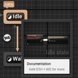 그리고 Entry에서 바로 연결되는 State는 기본상태로 Idle과 연결시켜 주고 Idle은 테두리 부분에 마우스를 올리면 색이 변경되는데 이 상태에서 드래그하면 다른 애니메이션과 연결할 수 있는 상태가 된다.