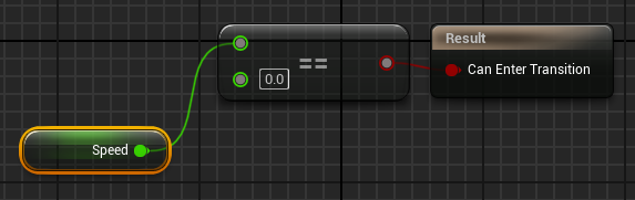 Walk -> Idle 도 마찬가지로 노드를 구성하는데 여기서는 연산자를 == 를 사용해서 속도가 0일 때 즉 움직이지 않을 때는 Idle 애니메이션이 재생되도록 하면 된다.