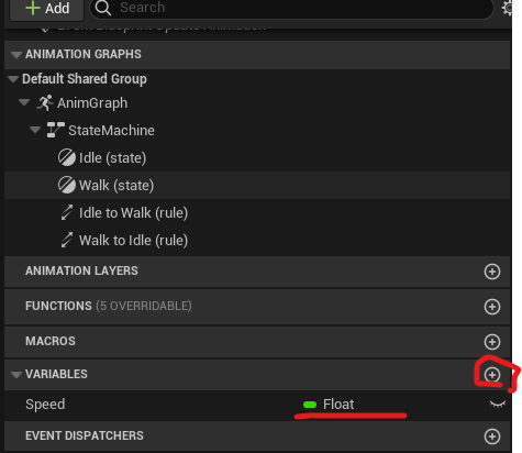 Speed 이름의 Float 타입 변수를 추가한다.