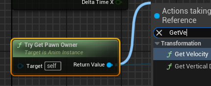 Return Value를 드래그하여 GetVelocity 노드를 추가한다.