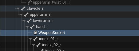 Skeletaon Tree 창에서 적당한 위치에 무기를 장착할 위치로 사용할 소켓을 추가한다.