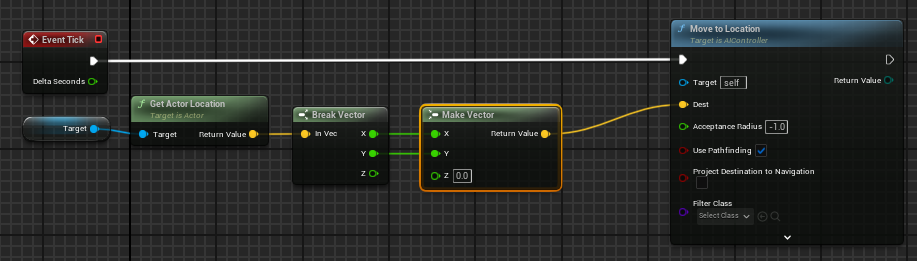 타겟을 향해 이동하는 함수는 Move to Location을 사용한다.