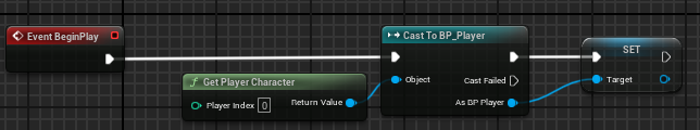 먼저 BP_Player 타입의 Target 변수를 만들고 시작할 때 GetPlayerCharacter를 캐스트 해서 변수를 저장한다.