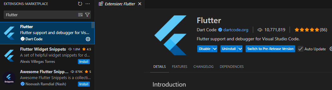 두 번째로는 Visual Studio Code를 활용해서 여기서 Flutter를 설치하는 방법이 있다.