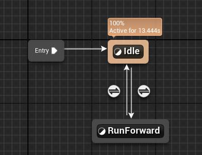 추적하는 동안 이동하는 애니메이션이 재생되고 목적지에 도착하면 일반 상태의 애니메이션이 재생된다.