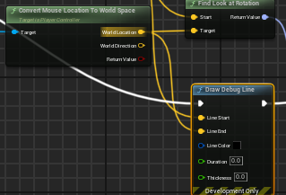 'Draw Debug Line'을 사용해서 시작점과 끝점을 각각 플레이어 위치, 마우스 커서의 위치로 값을 연결한다.