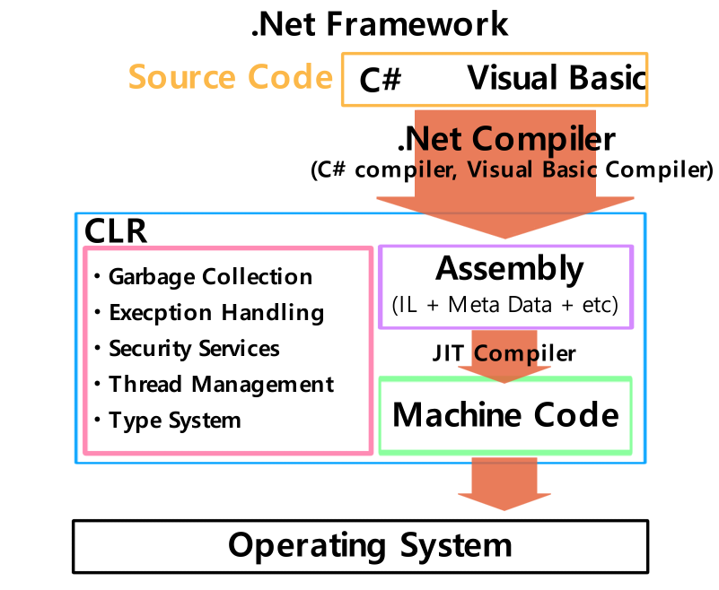 .Net 프레임워크 환경은 다음과 같은 과정으로 작업이 진행된다.