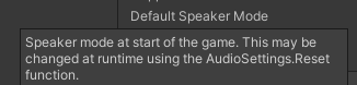 프로젝트의 오디오 출력을 설정할 수 있는 옵션이다. 유니티 엔진에서 오디오가 재생될 때 사용되는 스피커의 타입을 지정할 수 있다.