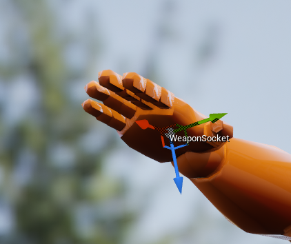 플레이 시 캐릭터의 손에 위치하게 생성하도록 한다.